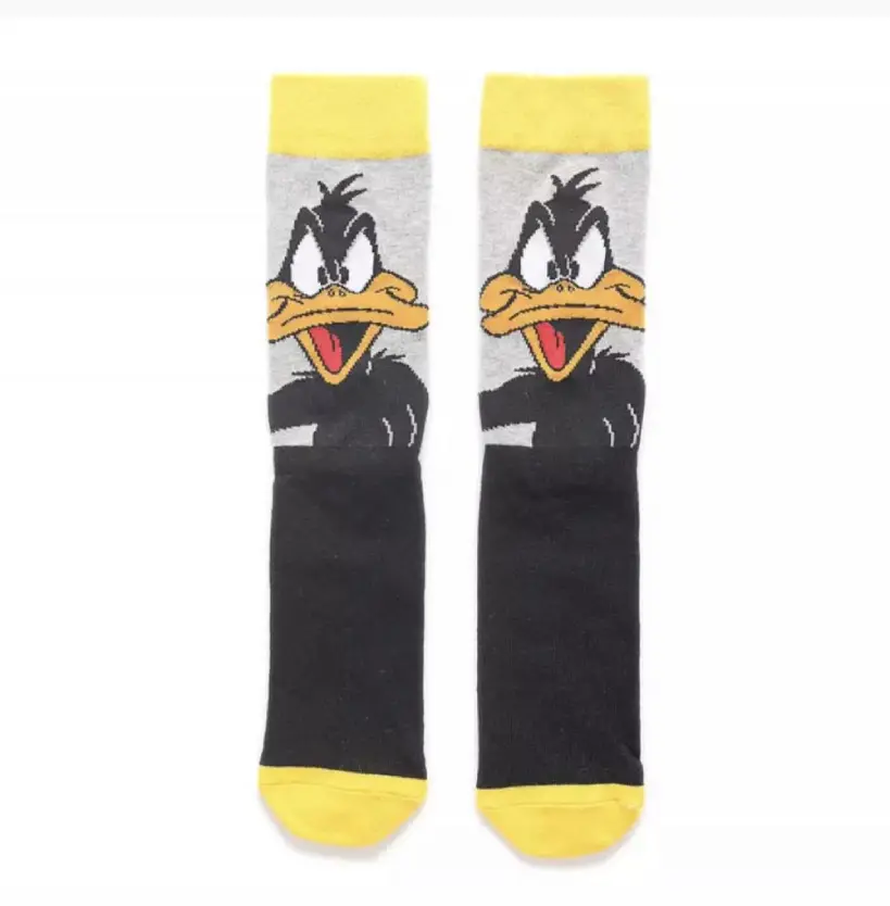 يجمع جورب انمي دافي دك أسود رمادي أصفر بين التصميم الكرتوني الكلاسيكي والخامة المريحة وطول الكرو العملي، لمحبي لوني تونز والستايل الكاجوال.